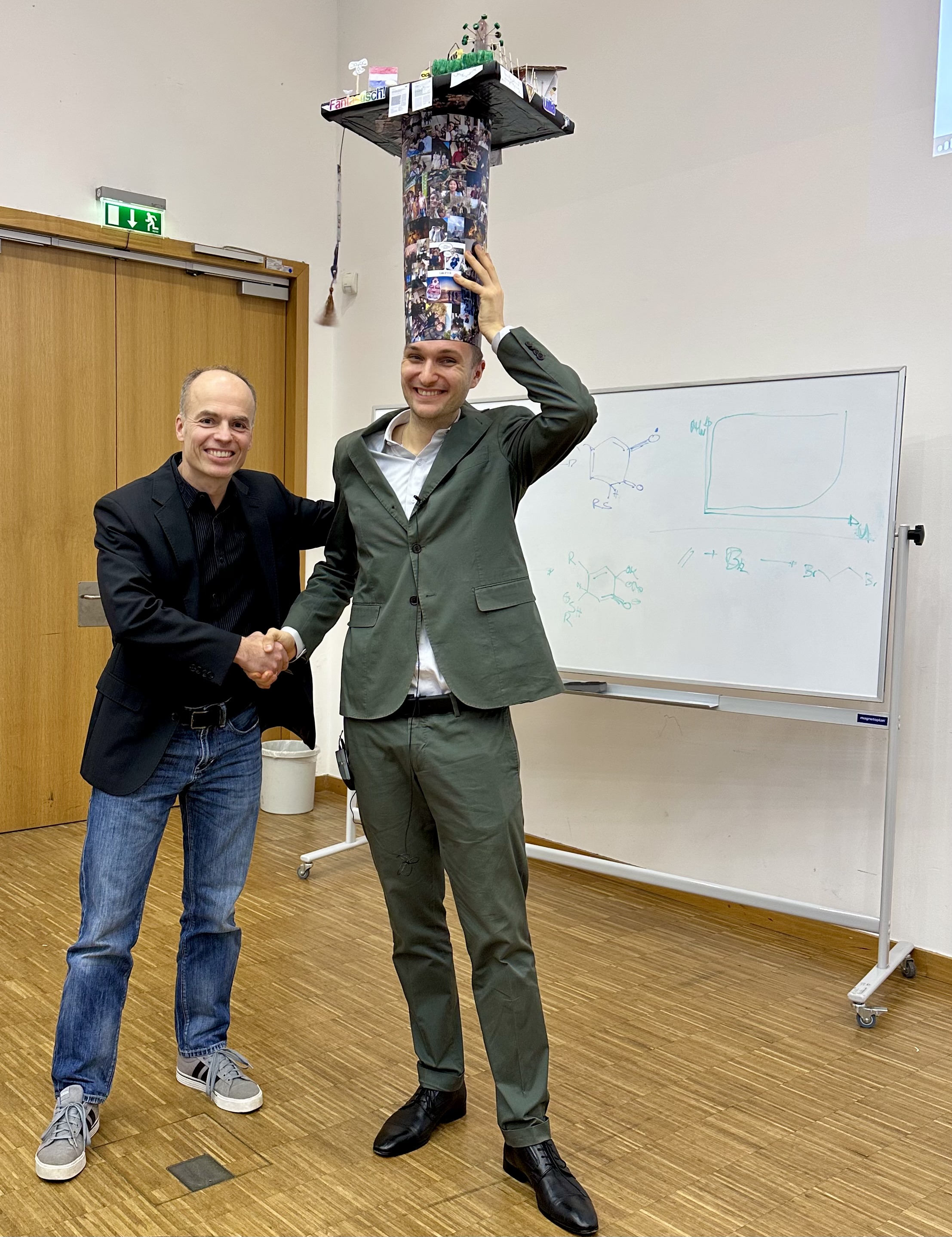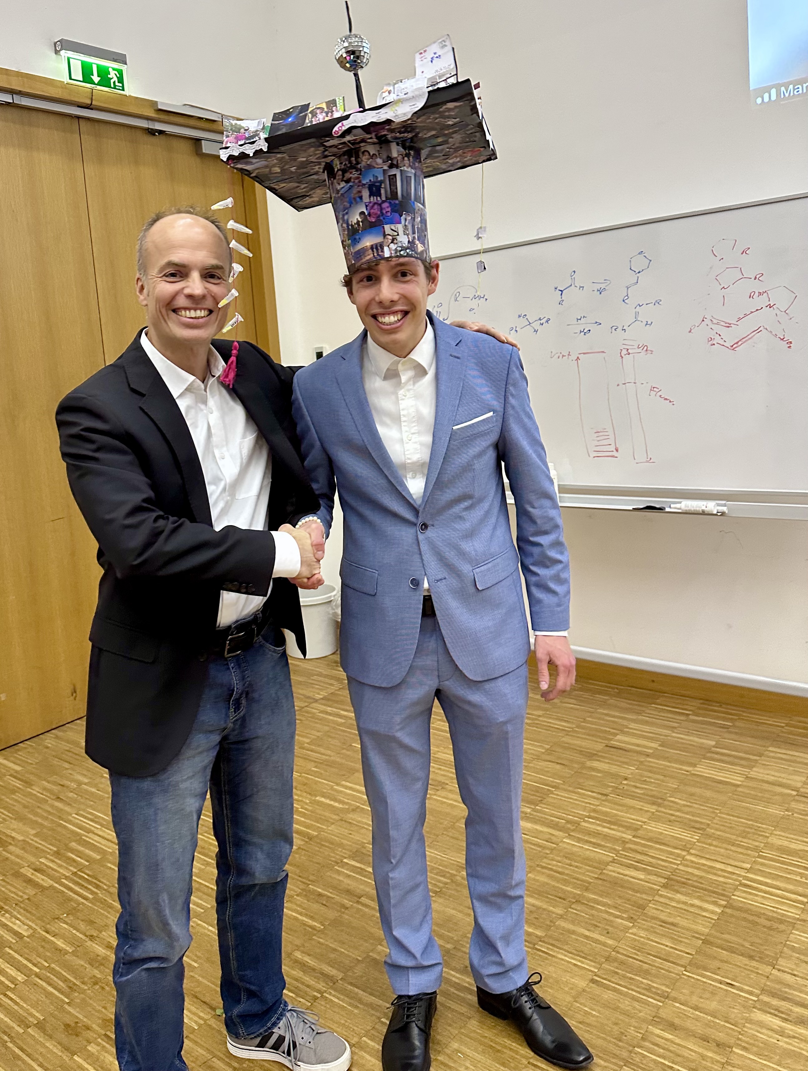 We warmly congratulate Steffen Busche on successfully defending his PhD thesis "A Modular System for Personalized Support Materials by Inverse Electron Demand Diels-Alder Reaction of Norbornenes and 1,2,4,5-Tetrazines". A great achievement—congratulations, Dr. Busche!